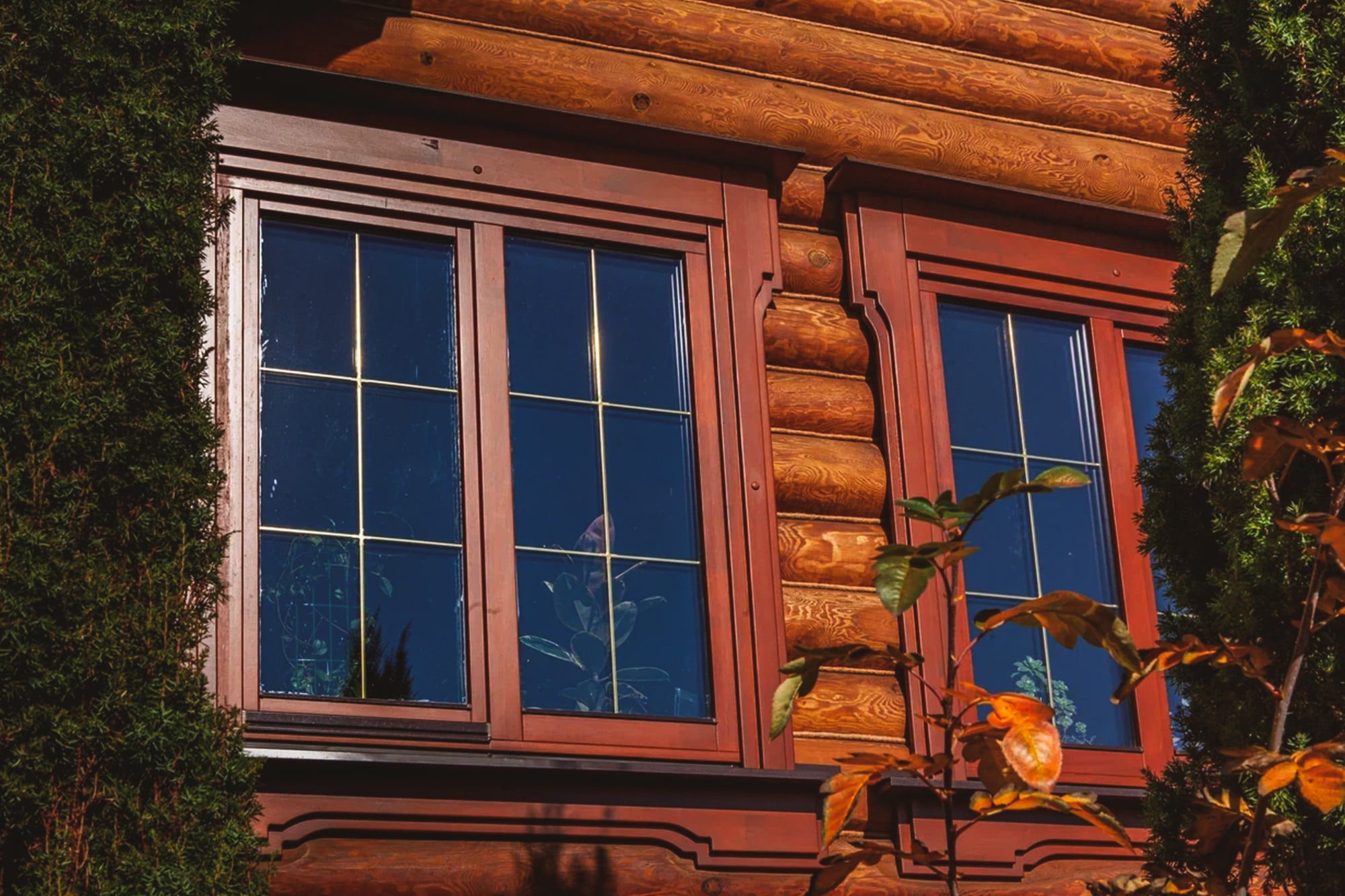 Лиственница ценится за плотность и устойчивость к влаге. Её волокна содержат природные смолы, что делает рамы долговечными даже при высокой влажности и температурных колебаниях. Такие окна часто устанавливаются в банях, саунах и на фасадах, подверженных атмосферным нагрузкам.