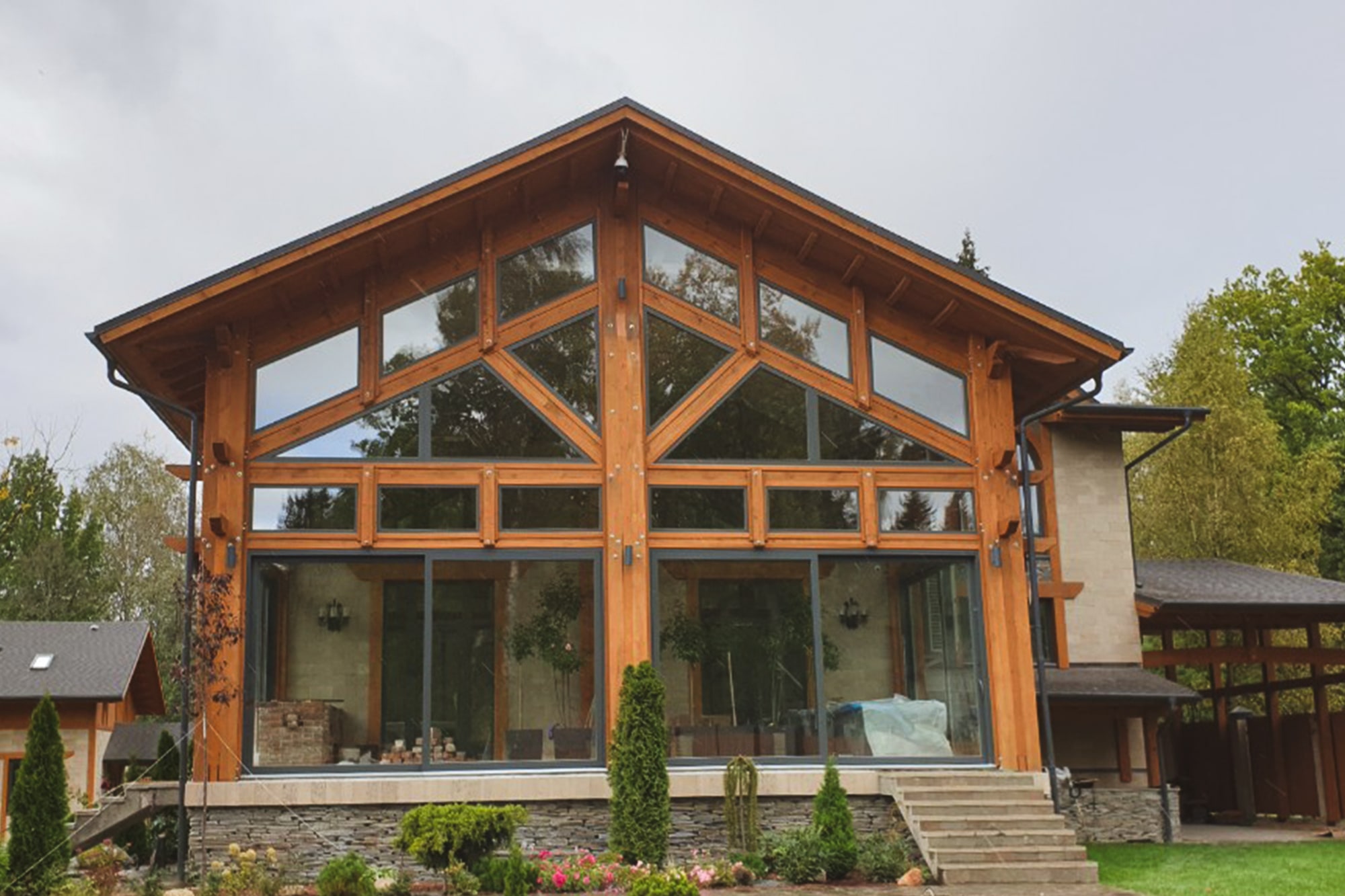 Для оконных конструкций используются сосна, лиственница, дуб и ясень. Древесина подбирается под архитектуру и интерьер. Оконный профиль может покрываться лаком, краской или тонировкой с сохранением текстуры дерева. Отделка дополнительно защищает материал от влаги, ультрафиолета и перепадов температур.