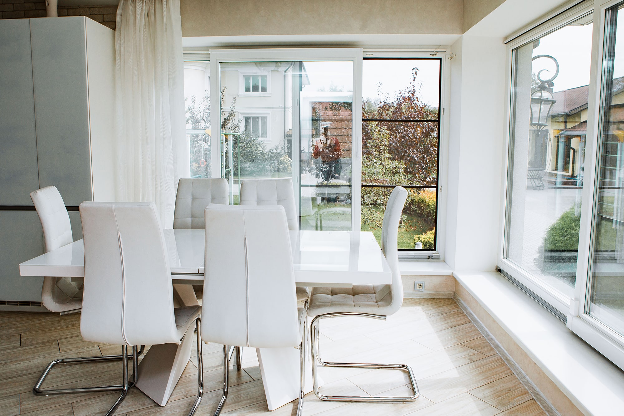 В загородных проектах подобные варианты используются для выхода в сад и на террасу. Система помогает объединить интерьер и участок в единое пространство, обеспечивая комфорт круглый год. Дополнительно формат позволяет организовать панорамное остекление с максимальным обзором участка. Такие изделия особенно востребованы в домах с открытыми планировками и большими гостиными. Оконный patio-формат подчёркивает архитектуру здания и повышает общую ценность объекта.