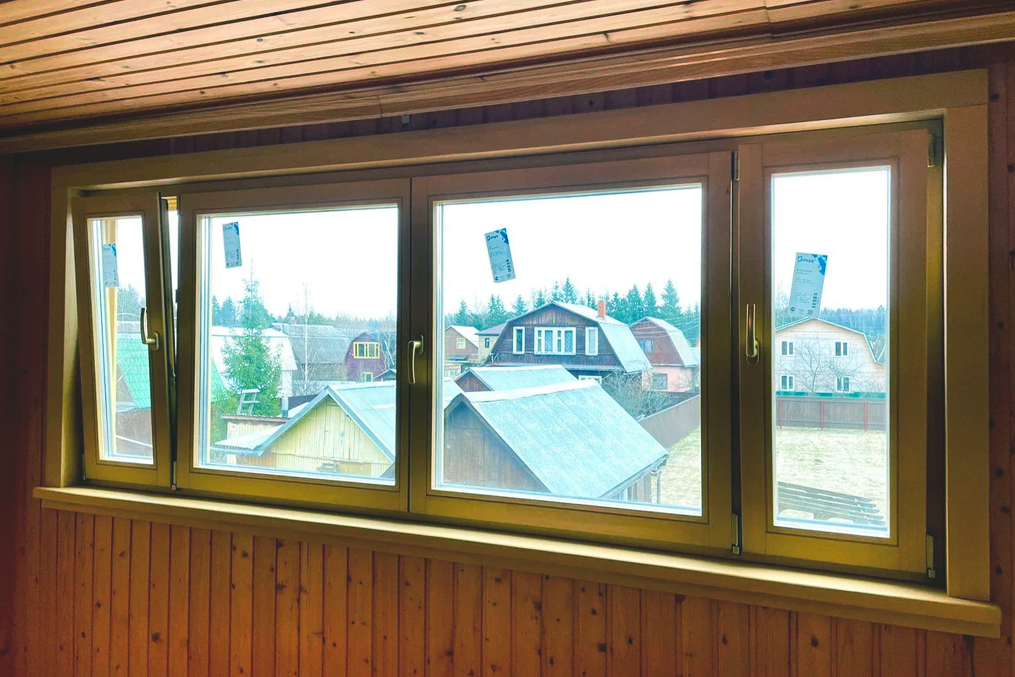 Для дома. В коттеджах и дачах деревянные окна с форточкой дают возможность продумать архитектуру фасада и вентиляцию помещений. Здесь форточка становится не просто элементом проветривания, а частью дизайна: можно реализовать арочные или панорамные конструкции, сочетать глухие и открывающиеся створки.