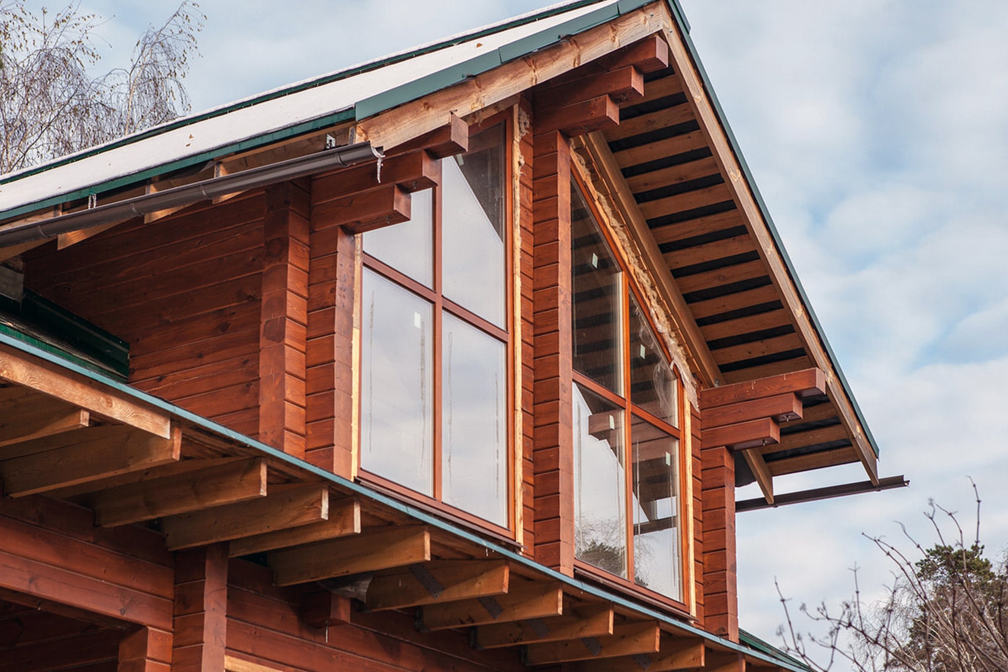 Каждое строение имеет свои архитектурные особенности, поэтому окна в доме из бруса разрабатываются под конкретный проект. Подбираются цветовые решения, декоративные элементы и конфигурации, соответствующие архитектурному стилю. Возможен комплексный подход к остеклению всего здания, включая нестандартные проёмы.